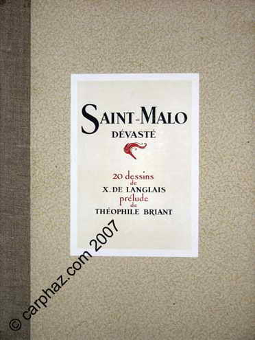 | P 398 T 670 | Saint-Malo Dévasté | Xavier de Langlais | Album de 20 dessins prélude de Théophile Briant | Imprimerie Beuchet et Vanden Brugge | 1946 | |