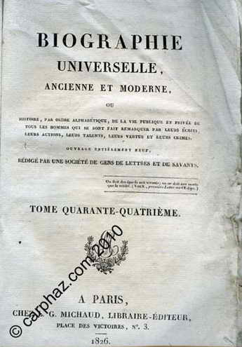 P 767 T 160 | Biographie Universelle | Broché Tome 44 | L. G. Michaud, Libraire-Editeur | 1826 | |||||||||||||||||||||||||||||