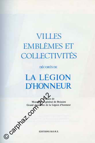 P 860 T 760 | Villes, Emblèmes et Collectivités décorés de la Légion d'Honneur | Relié | B.O.R.E | 1976 | |||||||||||||||||||||||||||||