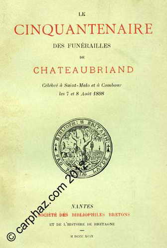 P 931 T 460 | Le Cinquantenaire des Funérailles de Chateaubriand (Célébré à Saint-Malo et à Combour les 7 et 8 août 1898) | Broché | Société des Bibliophiles Bretons | 1899 | |||||||||||||||||||||||||||||
