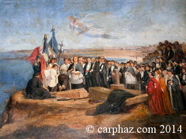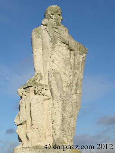 Statue située dans le jardin du Casino. Huile sur bois de Valentin-Louis Doutreleau (Inhumation de Chateaubriand au Grand Bé) Armes : de gueules, semé de fleurs de lys dor. Devise : Mon sang teint les bannières de France. |